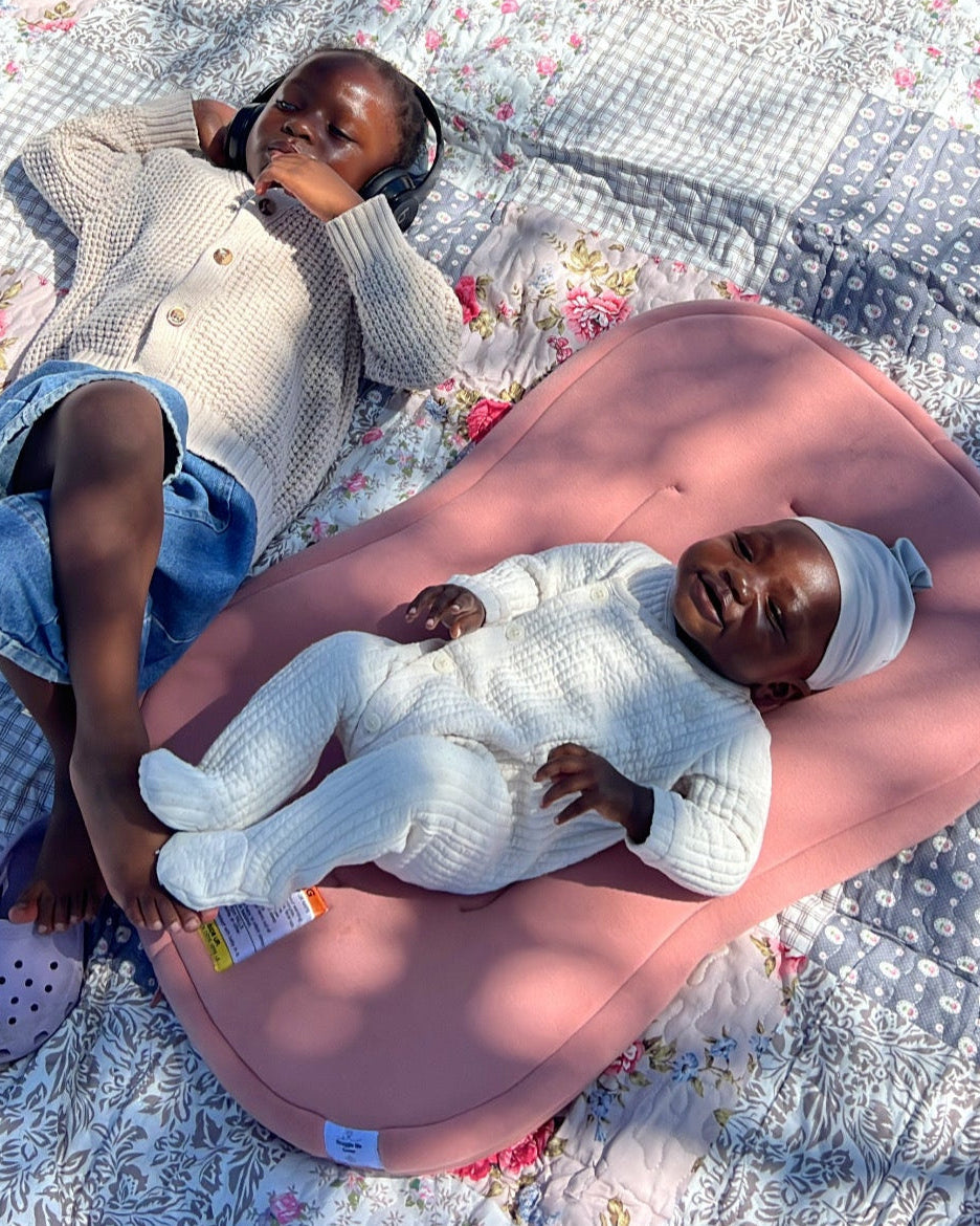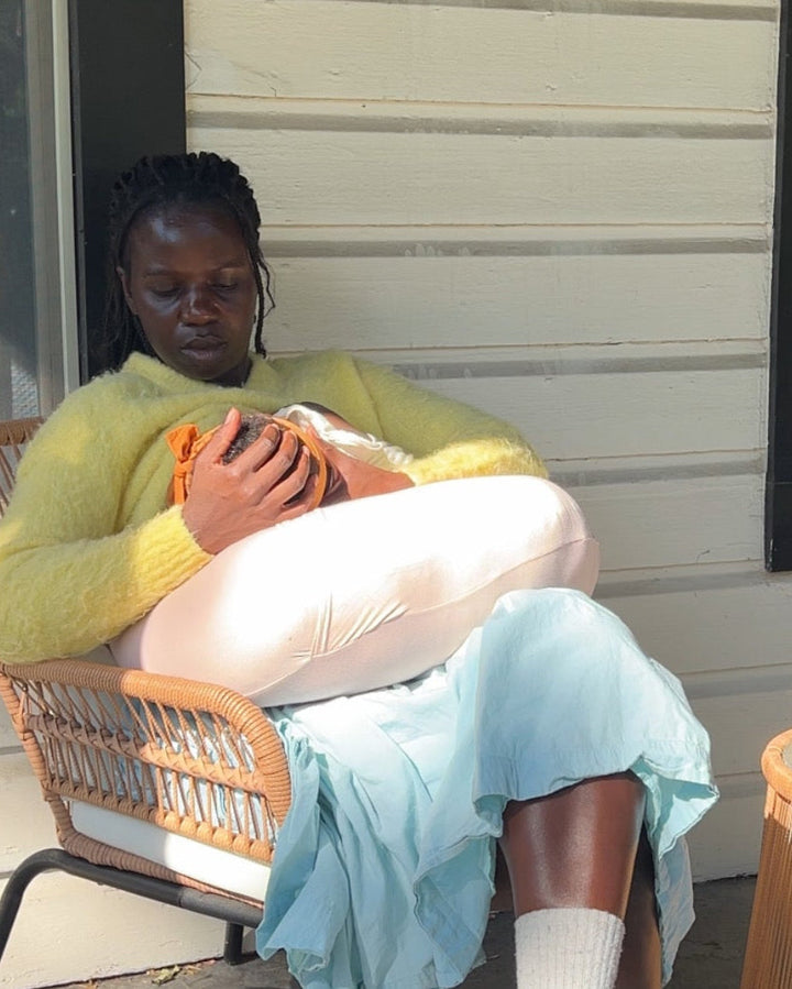 “The Curve gives such gentle, ergonomic support for lounging or bonding time. I love that the muslin cover is removable, so it’s easy to clean and still looks beautiful in our space.”