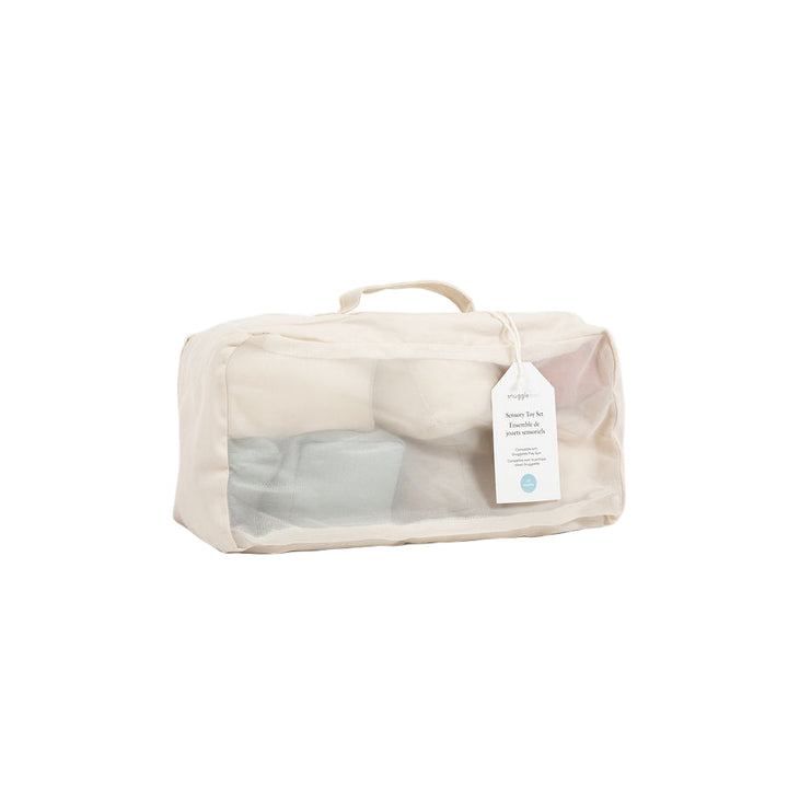 The Snuggle Me® Sensory Toy Set is thoughtfully designed to encourage your baby’s exploration and cognitive growth. Made from 100% organic cotton twill, each toy is soft, gentle on delicate skin, and perfect for little hands to grasp, squeeze, and explore.